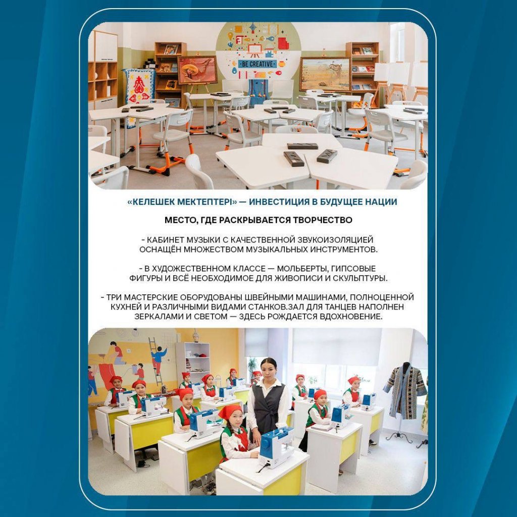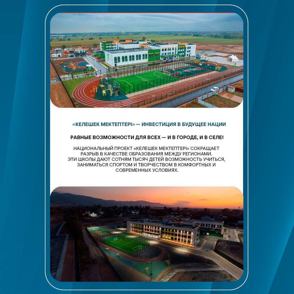 🇰🇿 Мемлекет басшысы Қасым-Жомарт Тоқаевтың тапсырмасымен жүзеге асырылып жатқан «Келешек мектептері» ұлттық бастамасы аясында салынған заманауи білім ордалары — еліміздің болашағына бағытталған стратегиялық маңызды жоба. Бұл мектептер қазіргі заманның талаптарына сай, озық білім беру технологияларымен, цифрлық инфрақұрылыммен және инновациялық оқу әдістемелерімен жабдықталған.